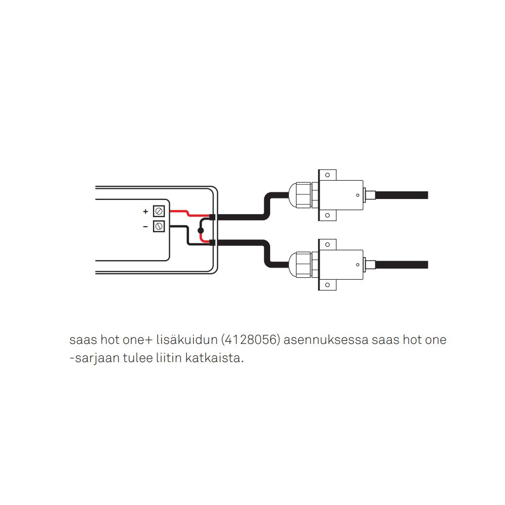saas hot one+ on lisäkuitu asennusholkilla highline hot one kuituvalosetille. Voidaan liittää highline wire johtosarjoihin sekä highline driveriin(soveltuu esim saas sauna+ kanssa lisäosaksi highline wire johtosarjaan)